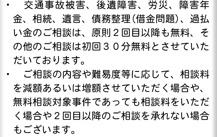当法人では、借金に関することを原則として相談料無料でご相談いただくことができますので、三重県で借金にお悩みの方はご相談ください。