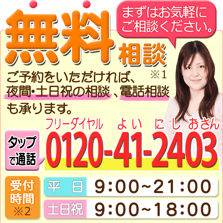 ご相談に関するお問合せは、フリーダイヤルやメールフォームで受け付けています。