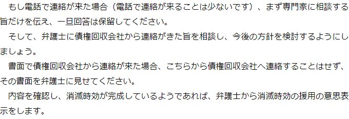 Q債権回収会社から連絡がきたのですが、どうしたらよいでしょうか?A お役立ち情報・Q&A(目次)お役立ち情報・Q&Aトップお役立ち情報どのようなことをすると時効の利益の放棄になるかQ&A債権譲渡と時効に関するQ&A 受付時間 平日 9時~21時、土日祝 9時~18時 夜間・土日祝の相談も対応します (要予約) 所在地 〒111-1111 ●町●●建物● 0120-41-2403 お問合せ・アクセス・地図